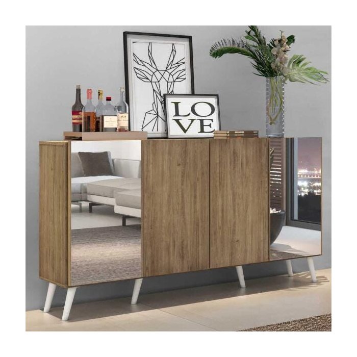 Aparador Buffet com Espelho e Pés Retrô Vegas Rustic/Branco Rustic/Branco