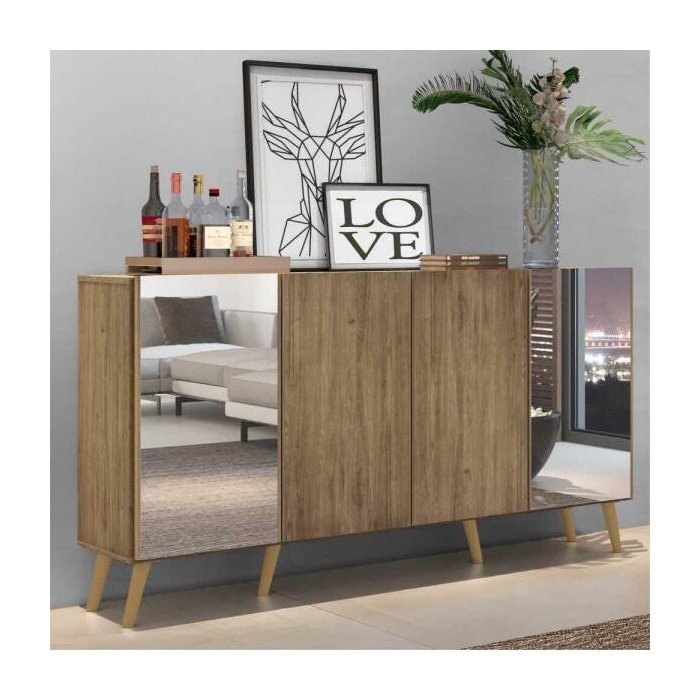 Aparador Buffet com Espelho e Pés Retrô Vegas Rustic/Natural Nature