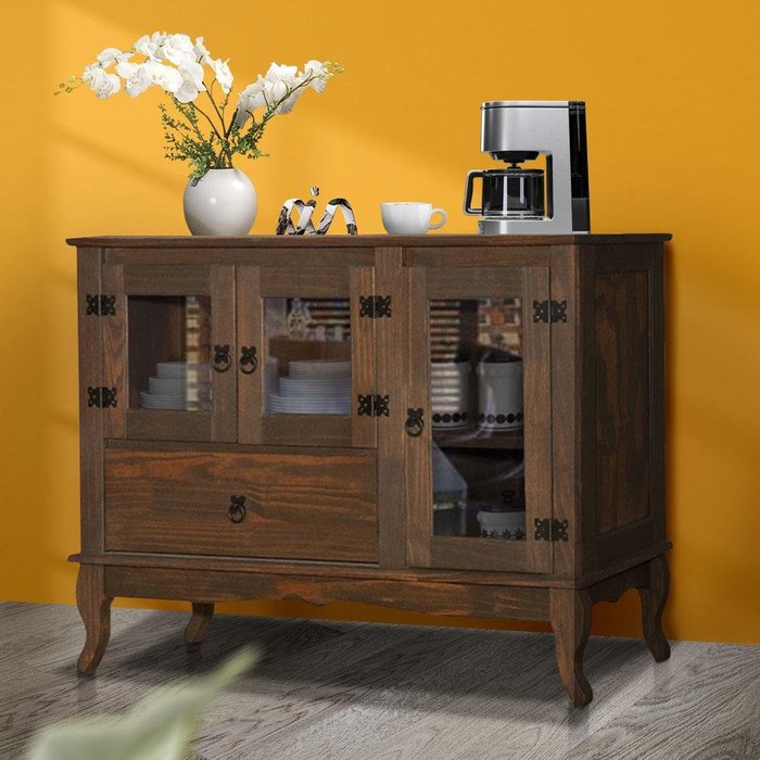 - Produzido em Madeira Maciça- Acabamento com pintura fosca envernizada- Puxadores em metal- 1 gaveta e 3 portas- Design rústico- Todas as portas com vidros Dimensões do produto: Altura 84 cm; Largura 118 cm; Profundidade 36 cm;Itens Inclusos: 01 Balcão RústicoRecomendações de Uso, Manutenção e Limpeza: Limpar com flanela ou pano macio seco, não utilizar produtos abrasivos, desengordurantes, álcool ou solvente. Não expor o produto diretamente à luz solar e à umidade.Garantia: 3 mesesOBS: Foto meramente ilustrativa, decorações não fazem parte do produto.