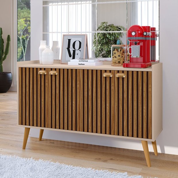 O Buffet Kiev é um produto exclusivo das Lojas RPM, projetado para quem busca um móvel moderno e funcional que facilite a organização e agregue beleza ao ambiente. Com 4 portas e puxadores concha, o buffet oferece uma prateleira organizadora interna e pés palito em PVC anti-umidade, garantindo durabilidade. Seu amplo tampo pode acomodar eletrodomésticos e itens decorativos. Versátil, o Buffet Kiev é ideal para diversos ambientes como cozinha, sala de estar, jantar, hall de entrada e mais. Complete a elegância do seu lar com este móvel sofisticado.