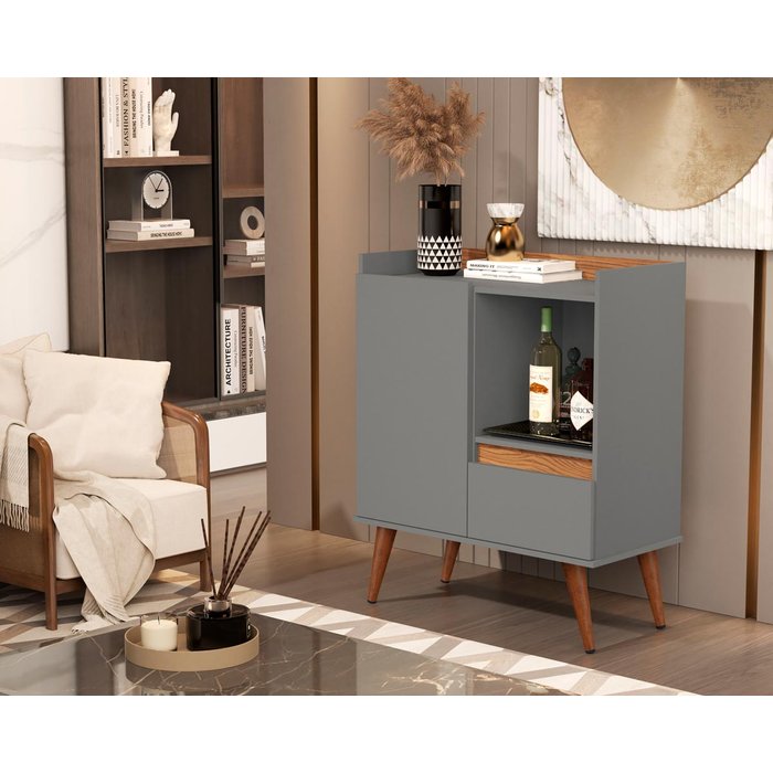 Aparador Buffet P/ Escritório Retro Status Cinza / Freijó