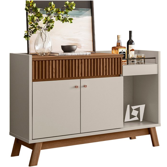 O Aparador Buffet Para Sala De Jantar 02 Portas 01 Gaveta Mateo L05 Freijó Off White - Lyam Decor tem tudo o que você que busca elegância e sofisticação precisa! Possui uma gaveta com amplo espaço interno, e detalhes ripados que trazem ainda mais charme ao produto! Conta com um porta bebidas com espelho, e com pés em estilo retrô que irão proporcionar elegância e sofisticação ao seu ambiente. Um design exclusivo que agrega muito valor à mobília e trazendo destaque para o ambiente. Pode ser disposto em sala de estar, jantar, hall de entrada ou até mesmo recepção. Garanta já o seu!