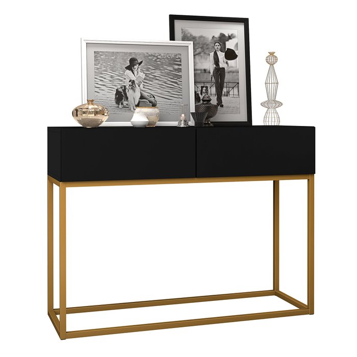 Aparador Buffet Preto Eros 90cm Estilo Industrial 2 Gavetas Pés de Ferro Dourado para Cozinha