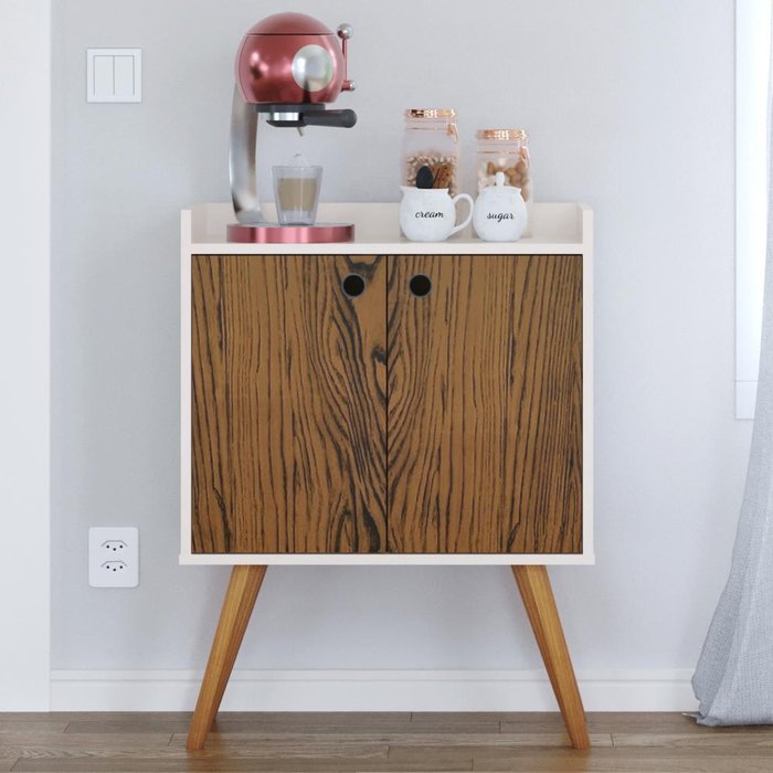 Aparador Buffet Retrô 2 Portas Alexa- Off White/Freijó - Rpm Móveis Off White / Freijó