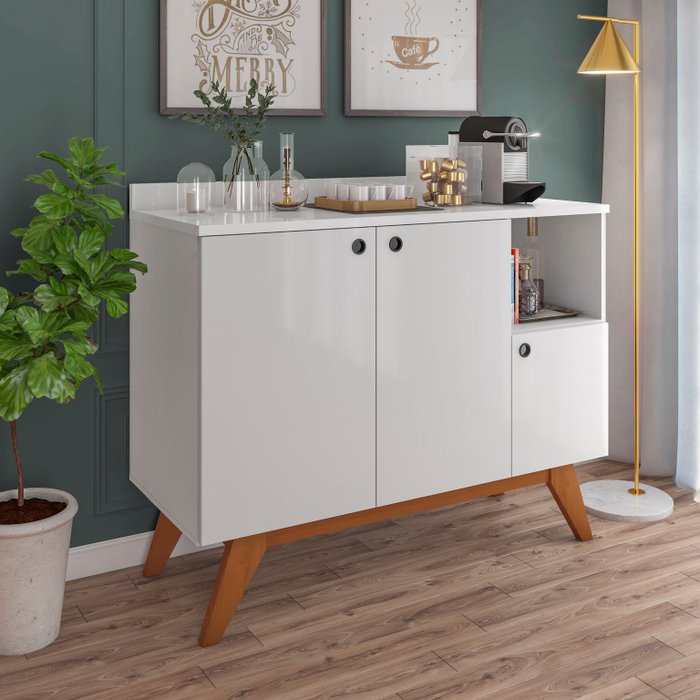 Aparador Buffet Retrô 3 Portas Coffe Thor:branco
