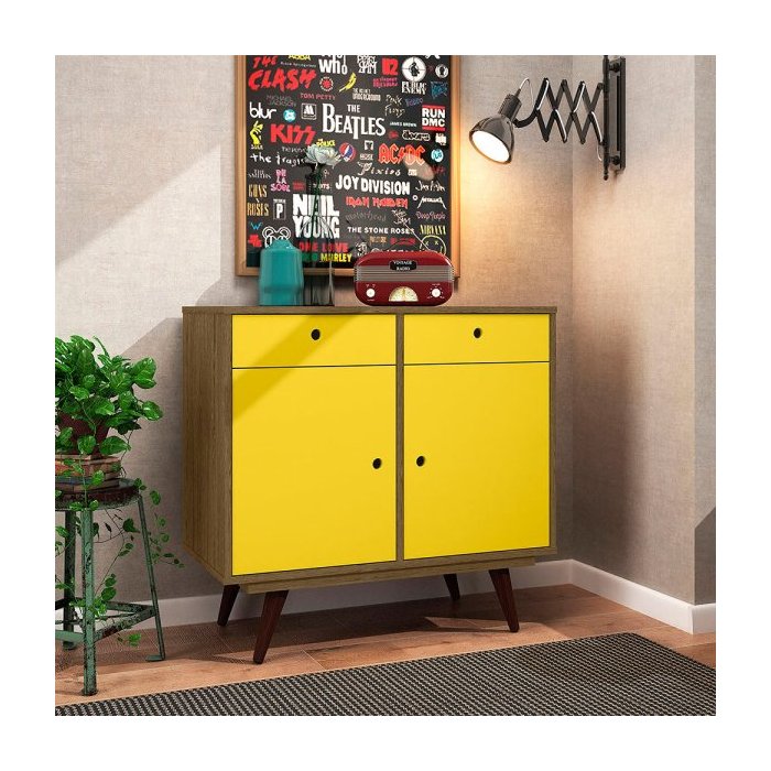 Aparador Buffet Retrô 90 Rustik Carvalho/Amarelo Ac