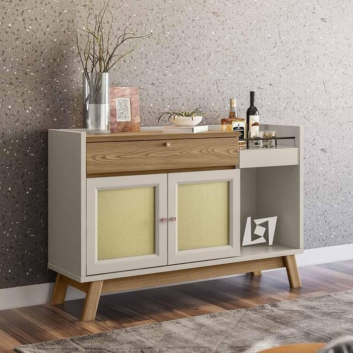 Aparador Buffet Retrô Bar Clássico 2 Portas 1 Gaveta Linea Brasil Piemonte Amêndoa Off White amêndoa Off White