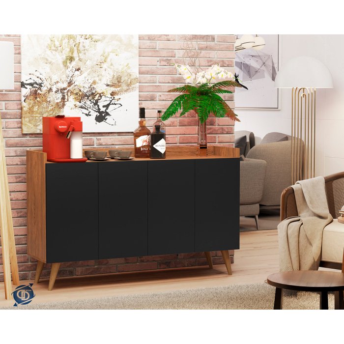 Aparador Buffet Retrô Pés Palito 4 Portas- Dullar:freijó