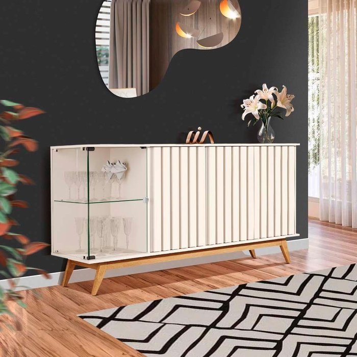 Aparador Buffet Ripado Porta De Vidro 180 Cm Pérola Daryl Shop Jm