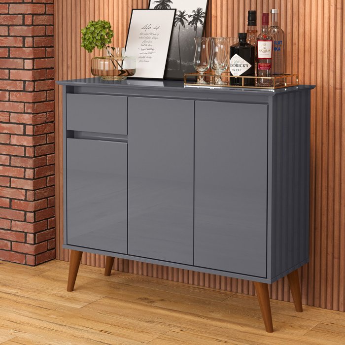 Aparador Buffet Sala 3 Portas 1 Gaveta Retro Veneza Cinza