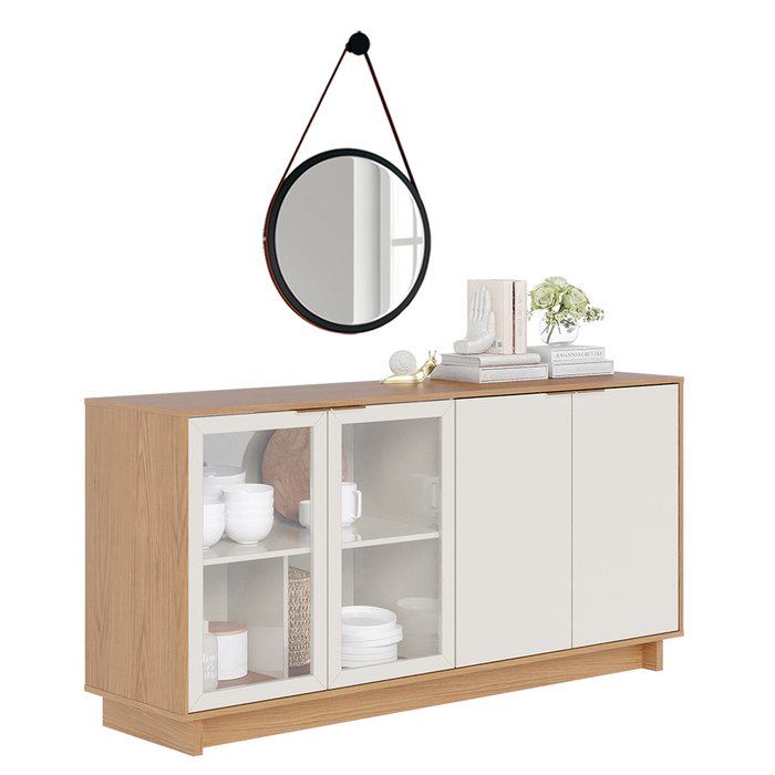 Aparador Buffet Sala de Jantar Áustria C04 Freijó Off White Com Espelho Adnet Preto - Lyam Decor