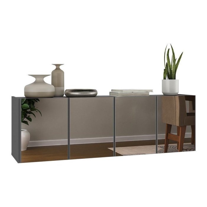 Aparador Buffet Suspenso Com Espelhos 4 Portas Multimóveis Mp8005 Grafite Grafite