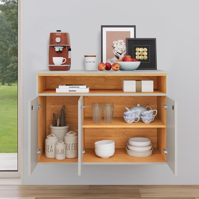 Aparador Buffet Suspenso Organização Sala Área Serviço 3 Portas Jessica Off White|Cinamomo-