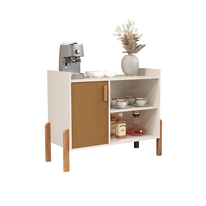 Aparador Cantinho Balcão do Café Luxor com Pés de Madeira Cedro/off White Cedro/Off White