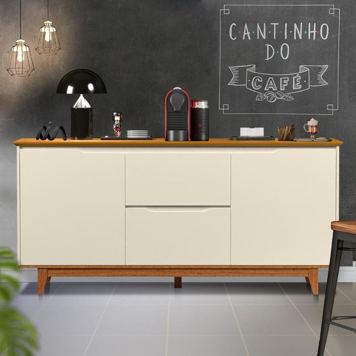 Aparador Cantinho Do Café 2 Portas 2 Gavetas Off White Freijó Flex Figueira Shop JM Off White Freijó Flex Figueira