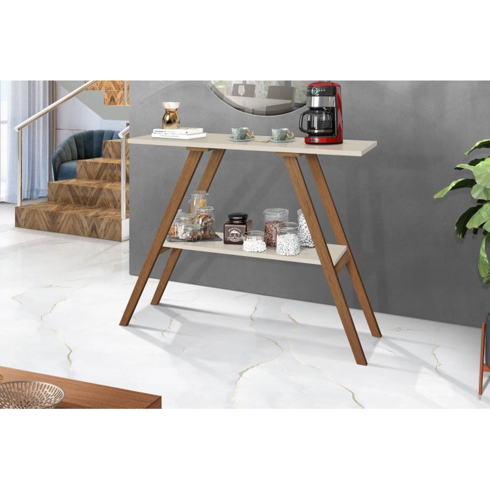 Aparador Cantinho do Café Decoração Pés em Madeira Retrô - Off White Off White
