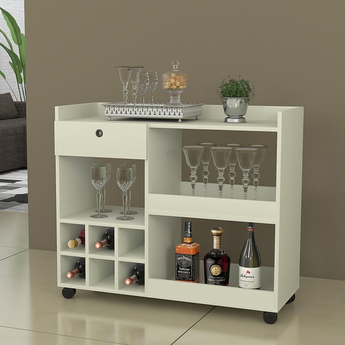 Aparador com Adega 6 Nichos 1 Gaveta 2 Prateleiras Balé Off White