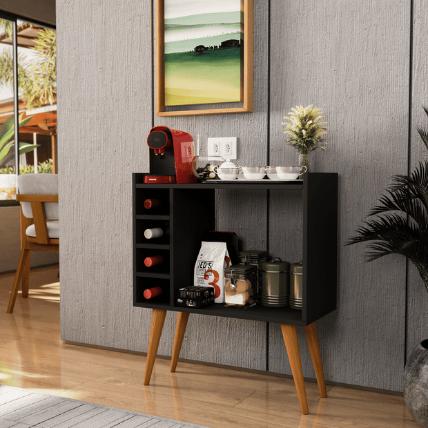 - Adega para até 4 garrafas;- Design clean;- Pés palito em madeira 30 cm;- Pintura UV;Dimensões do produto montado:Altura: 75,5 cmLargura: 64,5 cmProfundidade: 30 cm