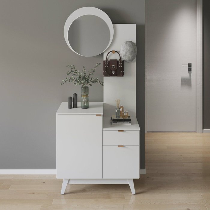 Aparador com Espelho e Gancho 2 Portas e 1 Gavetas Ap Espresso Móveis Branco