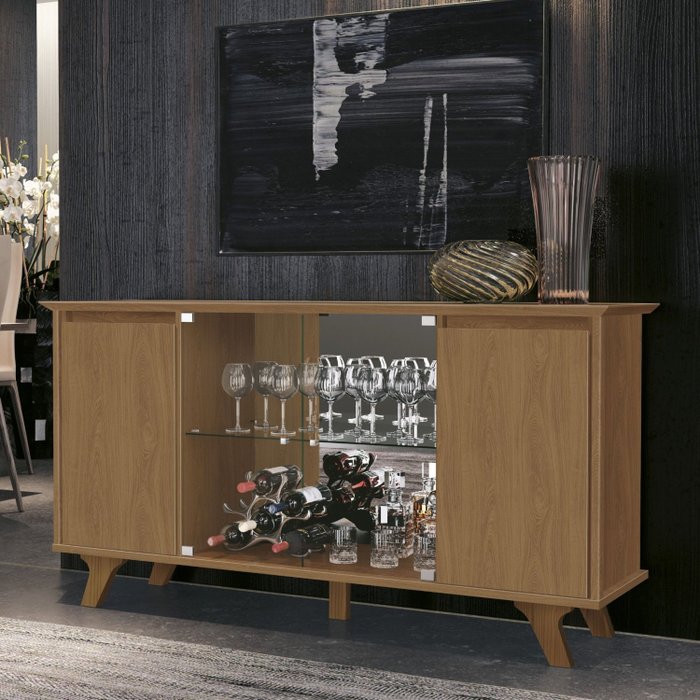 Aparador Cristaleira 2 Portas em Vidro 2 Prateleiras 160x84,5cm Requinte Freijó