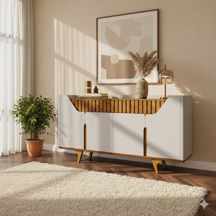 O Aparador Danúbio é a peça ideal para transformar sua sala de estar, sala de jantar ou hall de entrada em um ambiente sofisticado e funcional. Com design moderno, ele combina curvas elegantes, detalhes em ripado real e acabamento refinado, entregando charme e requinte para qualquer espaço.