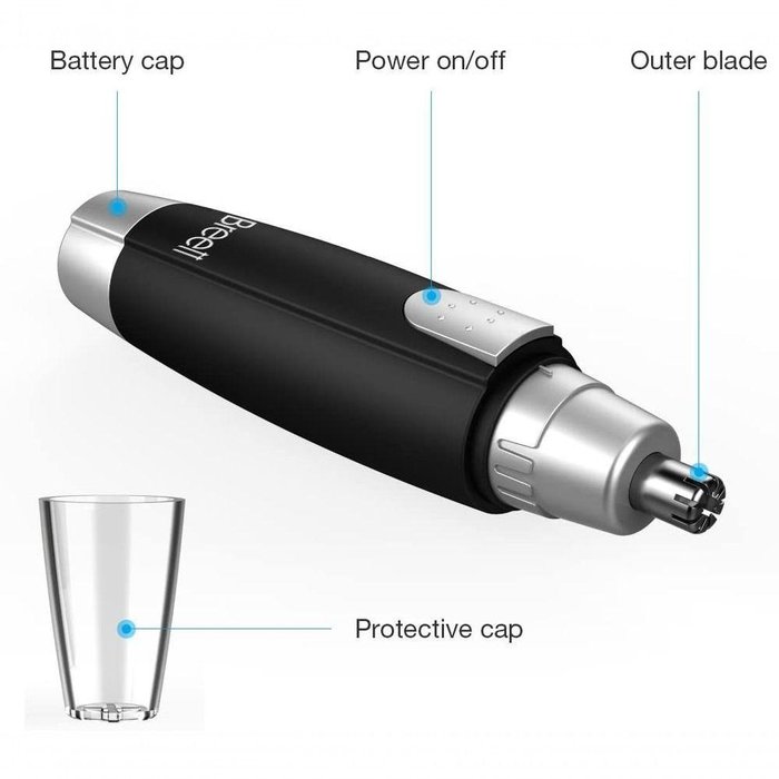 Aparador De Cabelo De Nariz E Orelha Portátil Pelos Nazal Preto/ Prata Esteja sempre com a aparência higiênica e saudável. Remova os pelos não desejados nas áreas da orelha e do nariz. Sistema fechado e circular da lâmina feita de aço inoxidável para a remoção segura e exata dos pelos. Remova aqueles pelos indesejáveis com toda a segurança e comodidade. Sem risco de ferimento, pois utiliza uma lâmina de corte rotativa sob um sistema rápido e seguro, eliminando a possibilidade de lesão, como ao usar uma tesoura. Funciona com 1 pilha AA (não inclusa). Lâminas de alta precisão. Material Resistente Lâminas de aço inoxidável Confortável e seguro. Corpo emborrachado e ergonômico Lâmina rotativa Botão de fácil acesso tipo deslize (liga/desliga) Motor potente e de baixo ruido