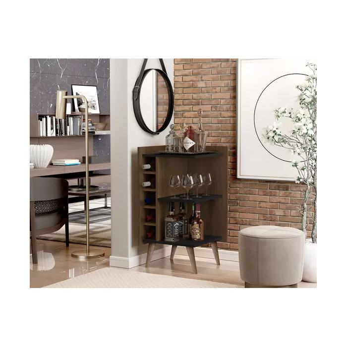 Aparador De Canto Sala Com Adega Bar Retrô Pés Palito Malbec - Canela Com Preto - Lojas GD