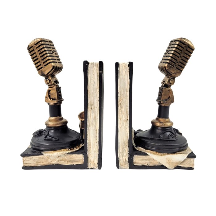 Aparador de Livro Musica Microfone Jogo Porta Livros Decor Preto e dourado