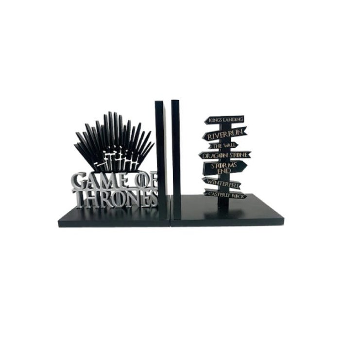 Famílias poderosas - reis e rainhas, cavaleiros e renegados, homens honestos e mentirosos - disputando um jogo mortal pelo controle dos Sete Reinos de Westeros para assumir o Trono de Ferro. Aparador de livros em MDF com detalhes em relevo. Uma peça única e indispensável para armazenar seus livros.Aparador composto de 2 unidades de 15x14cm cadaEspecificaçõesDimensões:15Ax14Lx10CMadeira MdfPintura LaccaMaterial: 100% MDFCuidados:- Limpar com um pano umedecido- Não utilizar produtos químicos ou abrasivos- Utilizar esponja macia para limpar