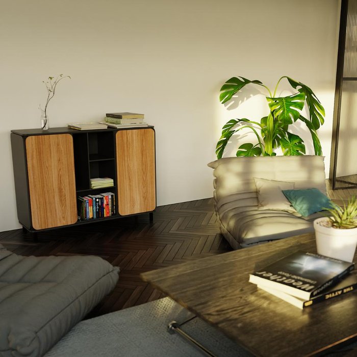 Aparador de Sala Elements Appennini Médio Cinza e Carvalho Cinza e Carvalho