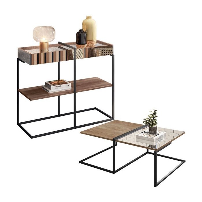 Aparador Decorativo com Mesa de Centro Espelhada Industrial D01 Design Demolição