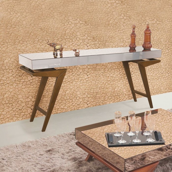 Aparador Decorativo Pérola Espelho Cristal Base em Madeira Maciça Castanho