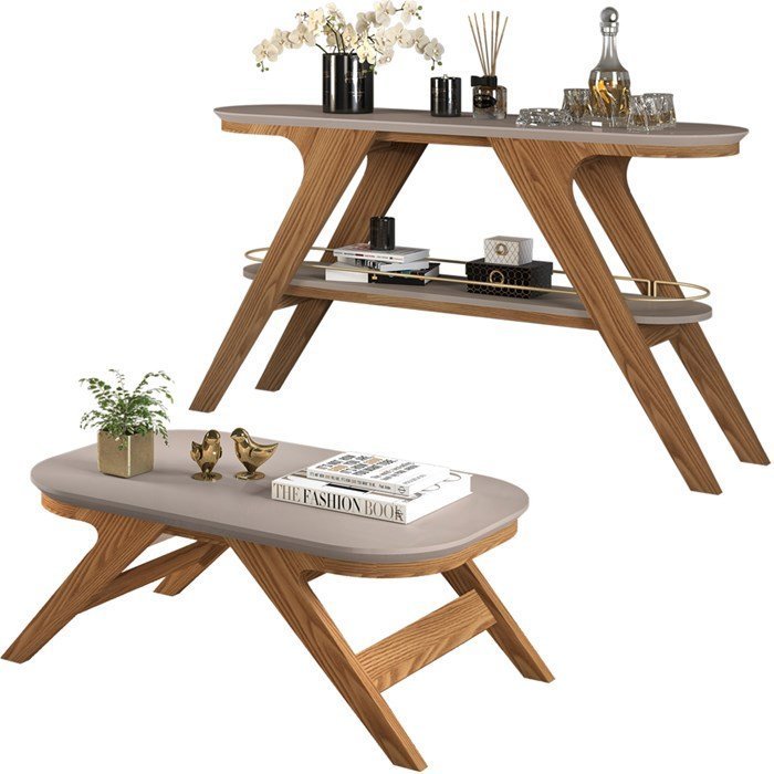 Aparador E Mesa De Centro 21186X21187 Carvalho Europeu Amarula Dj Moveis