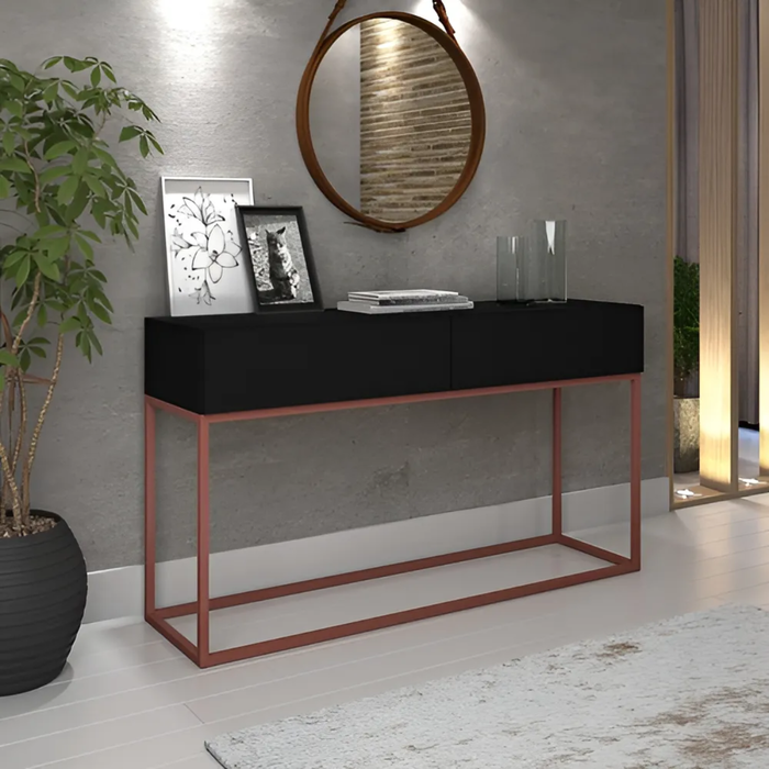 Aparador Eros 110cm Industrial Moderno e Minimalista 2 Gavetas:preto/cobre Preto/Cobre