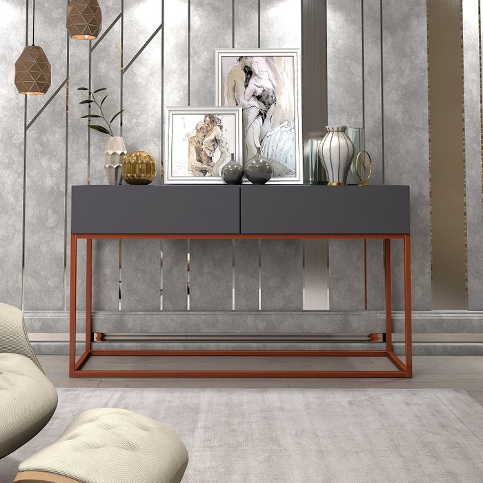 Aparador Eros com Pés de Ferro Base Cinza/Cobre