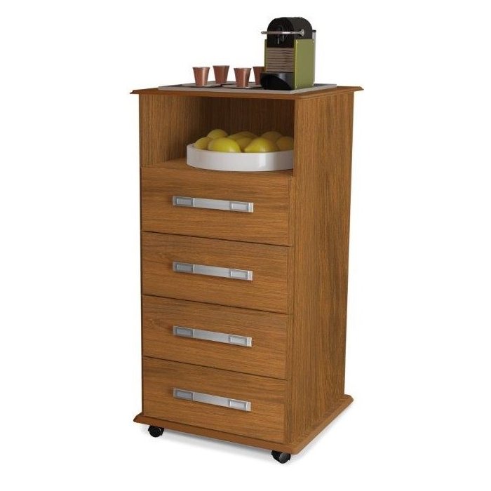 Aparador Gaveteiro Aç; 4 Gavetas com Rodinhas Balcão Cor Freijó Amadeirado Passe