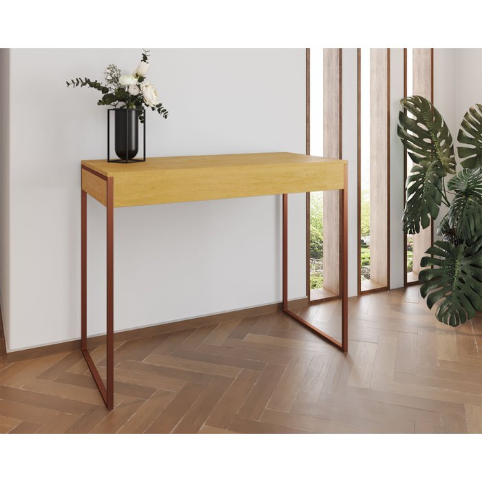 Aparador Industrial Califórnia 137x40 Ferro Cobre Tampo Canela