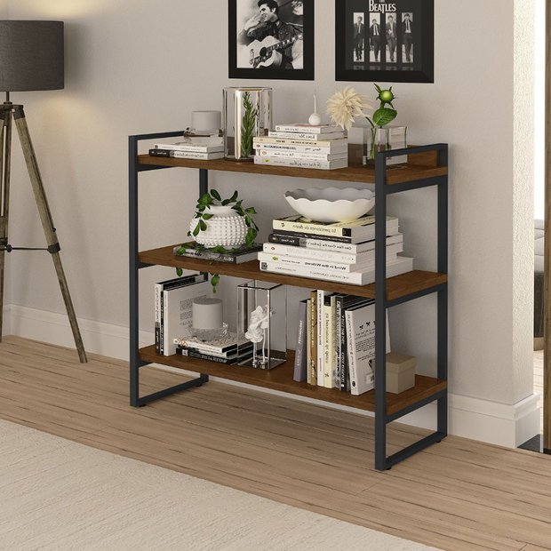 Aparador com 3 prateleiras estilo industrial decorativo, ideal para qualquer ambiente, deixando o espaço mais moderno e prático. Produto em aço carbono com pintura em pó e tampos em MDF com pintura UV.