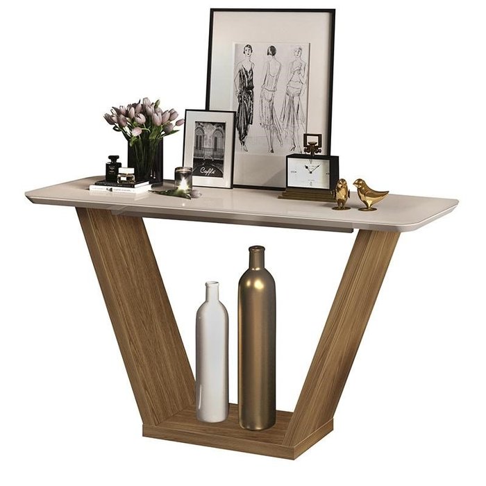 Aparador Lotus Tampo Chanfrado Curvo Carvalho Europeu/Creme - PR Móveis