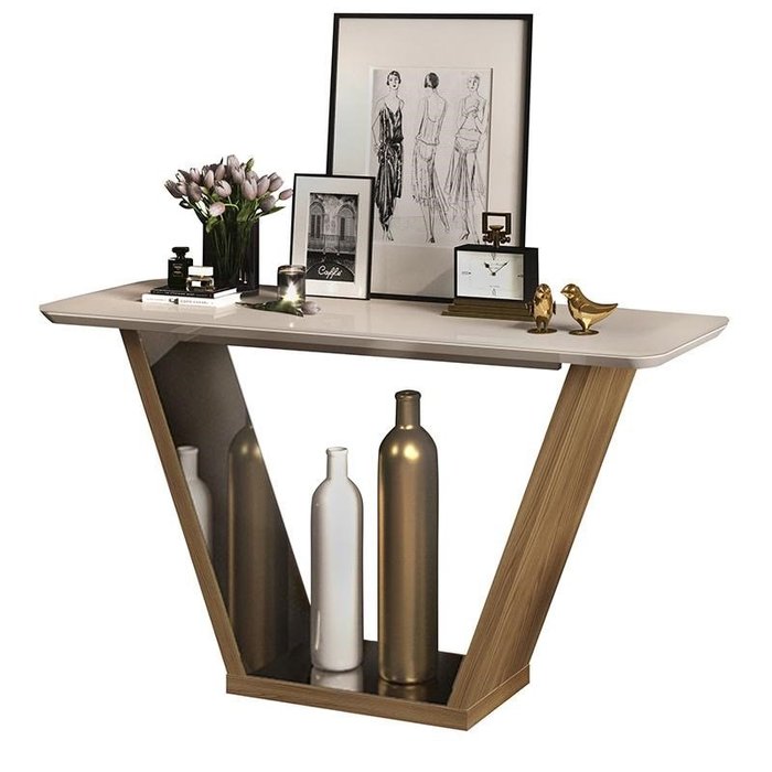 Aparador Lotus Tampo Chanfrado Curvo com Espelho Carvalho Europeu/Creme - PR Móveis