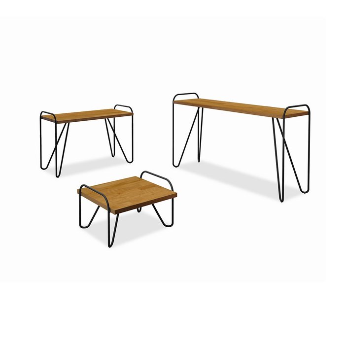 Aparador + Mesa de Centro + Mesa de Canto Estilo Industrial Naturalle Carvalho Madeira