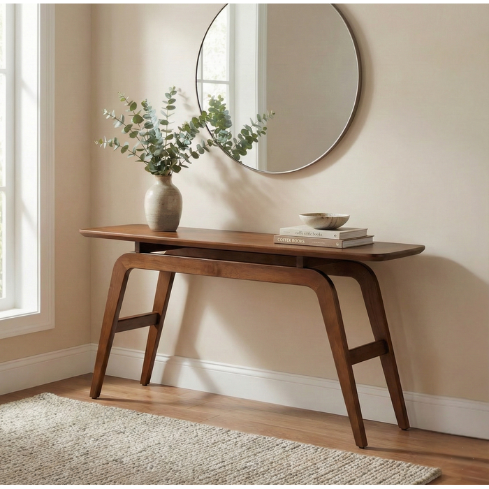 Com um generoso tampo de 160 cm, ele oferece o espaço ideal para expor seus livros, vasos e objetos de decoração favoritos, mantendo tudo organizado com elegância. Sua versatilidade permite que ele funcione como um divisor de ambientes ou como um prático suporte atrás do sofá.