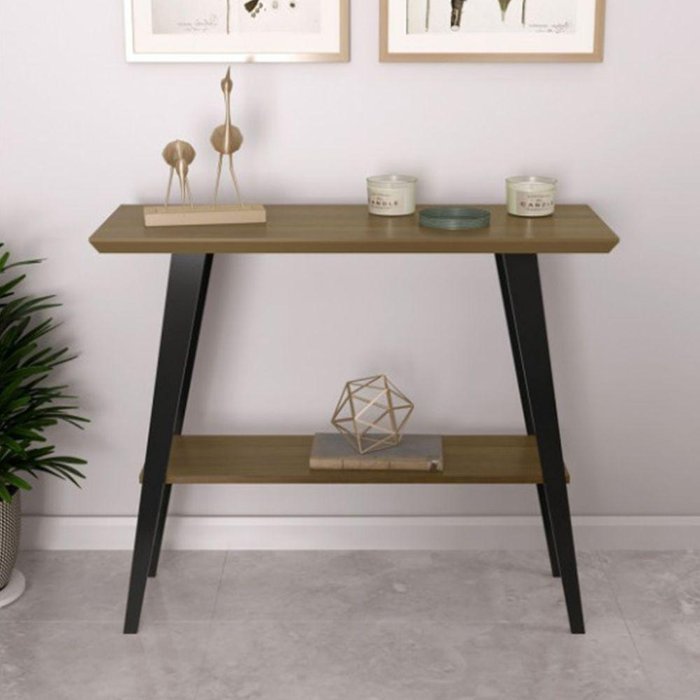 Aparador Mônaco um lindo móvel para deixar seu ambiente ainda mais sofisticado, pés de madeiras pinus, tampo de MDF.CARACTERÍSTICASTipo: AparadorModelo: MônacoCor tampo: AmêndoaCor Base: PretoBase: Madeira PinusProduto vai desmontado (Montagem responsabilidade do comprador)Embalagem acompanha a mesa e manual de montagemDIMENSÕES DO PRODUTOAltura: 77,4cmLargura: 92cmComprimento: 33cmEspaço entre os tampos: 43,2cmEspaço do último tampo até o chão: 29,7cmATENÇÃOOBJETOS NA FOTO NÃO ACOMPANHA O PRODUTO. AS IMAGENS SÃO MERAMENTE ILUSTRATIVAS E PODEM SOFRER VARIAÇÕES DE COR E PEQUENOS DETALHES DE ACORDO COM O SEU MONITOR, ILUMINAÇÃO DO AMBIENTE E ATÉ MESMO A SUA PERCEPÇÃO VISUAL.Aparador para Hall de Entrada Apartamento Base Preta Modelo Mônaco