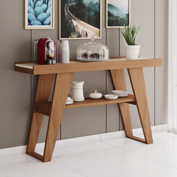 Organização Decorativa: Conta com uma prateleira inferior espaçosa, ideal para expor objetos de decoração, livros ou vasos, suportando até 8 kg, enquanto o tampo suporta até 15 kg.