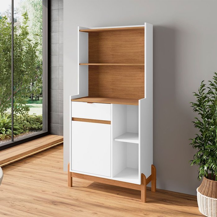Aparador para Sala de Estar Cantinho Café Bari Branco/Cedro
