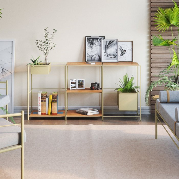 Aparador para Sala de Estar em Aço Curitiba Dourado Gold/Cumarú
