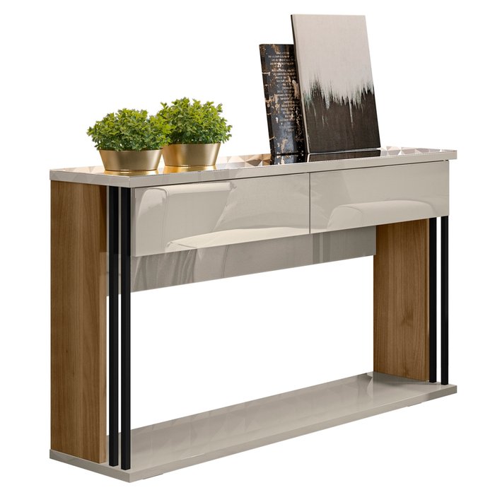 Aparador para Sala de Estar Espelhado 2 Gavetas 136cm Luxe L06 Avelã/Off White - Mpozenato