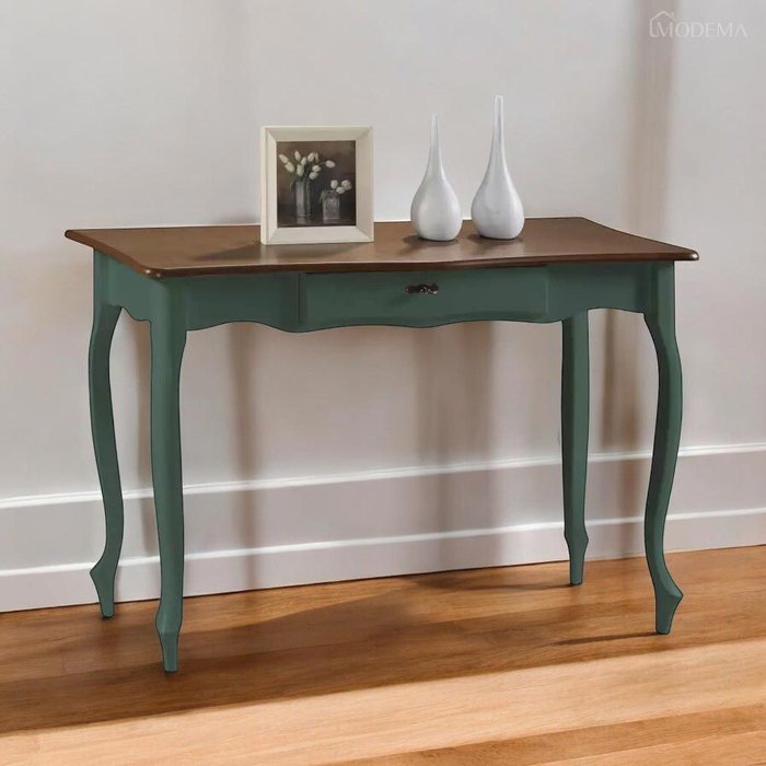 Aparador para Sala em Madeira Maciça Pés Luis Xv 1 Gaveta 1019 Linz Móveis - Verde Musgo/imbuia