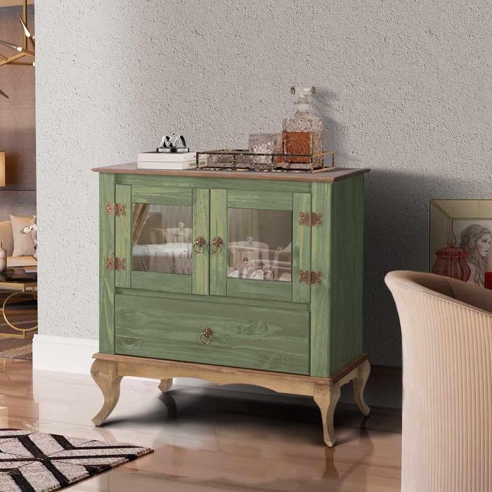 Aparador Para Sala Rústico Madeira Maciça Verde Shop JM