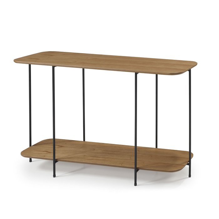 - Tampo e prateleira inferior em madeira com laminado de cinamomo.